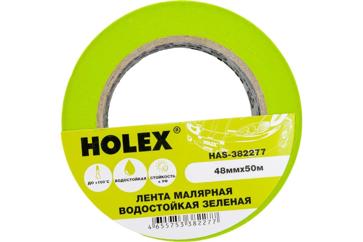 Лента малярная жарастойкая до 100 с зеленая водост. 48мм*50м Holex